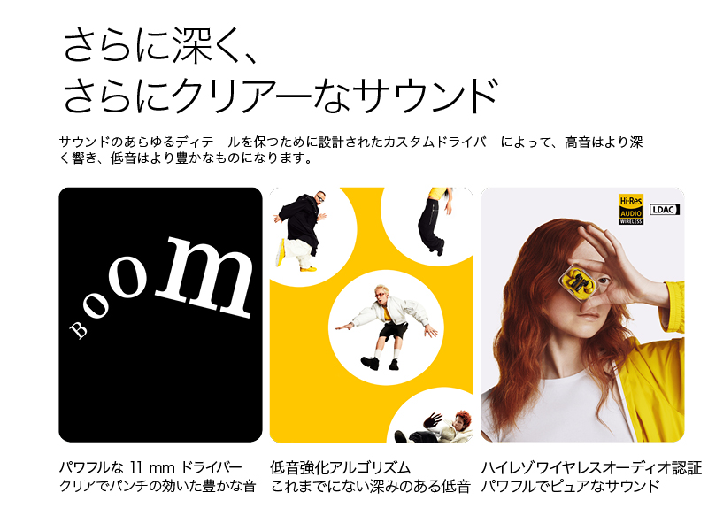 新しい11mmダイナミックドライバーは、以前のドライバーよりもコンパクトながら、2.5倍のトランジェント出力を提供します。また、革新的なデュアルチャンバー設計を採用し、2つの通気孔を追加したことで、空気の流れが改善され、音質が向上。Ear (a)は**10%**の改善により、よりクリアでパワフルなサウンドを実現しています。