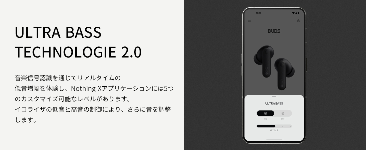 CMF BUDSは、音質を向上させるために、Ultra Bass Technology 2.0を採用し、Dirac Opteoによってプロフェッショナルに調整された臨場感あふれる音を提供します。1つのイヤホンで、深みのある低音、バランスの取れた中音域、優美な高音が楽しめることを特長とする、広大なサウンドスケープを体験できます。