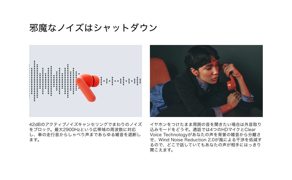 【最大42dBのアクティブノイズキャンセリング】