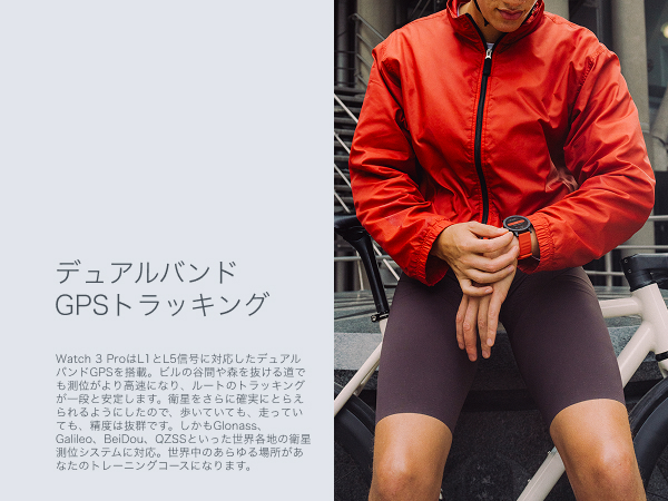 - GPS付きスマートウォッチ|高精度デュアルバンド測位】 L1+L5デュアルバンドGPSと5つの衛星システムに対応。ランニングや登山などの屋外アクティビティでも、正確で安定した位置情報をリアルタイムに取得可能。独立したGPS記録により、スマホ不要でコースをトラッキングできます。